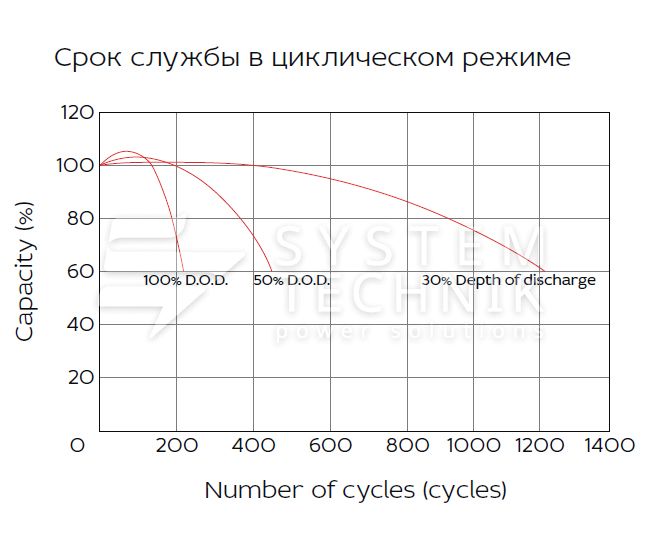 - Срок хранения без подзаряда: 6 мес. при 25°C;