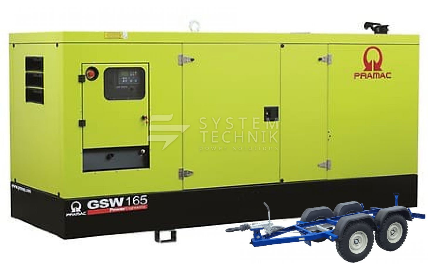 - Дизельный генератор Pramac GSW 165 P 220V В кожухе на прицепе