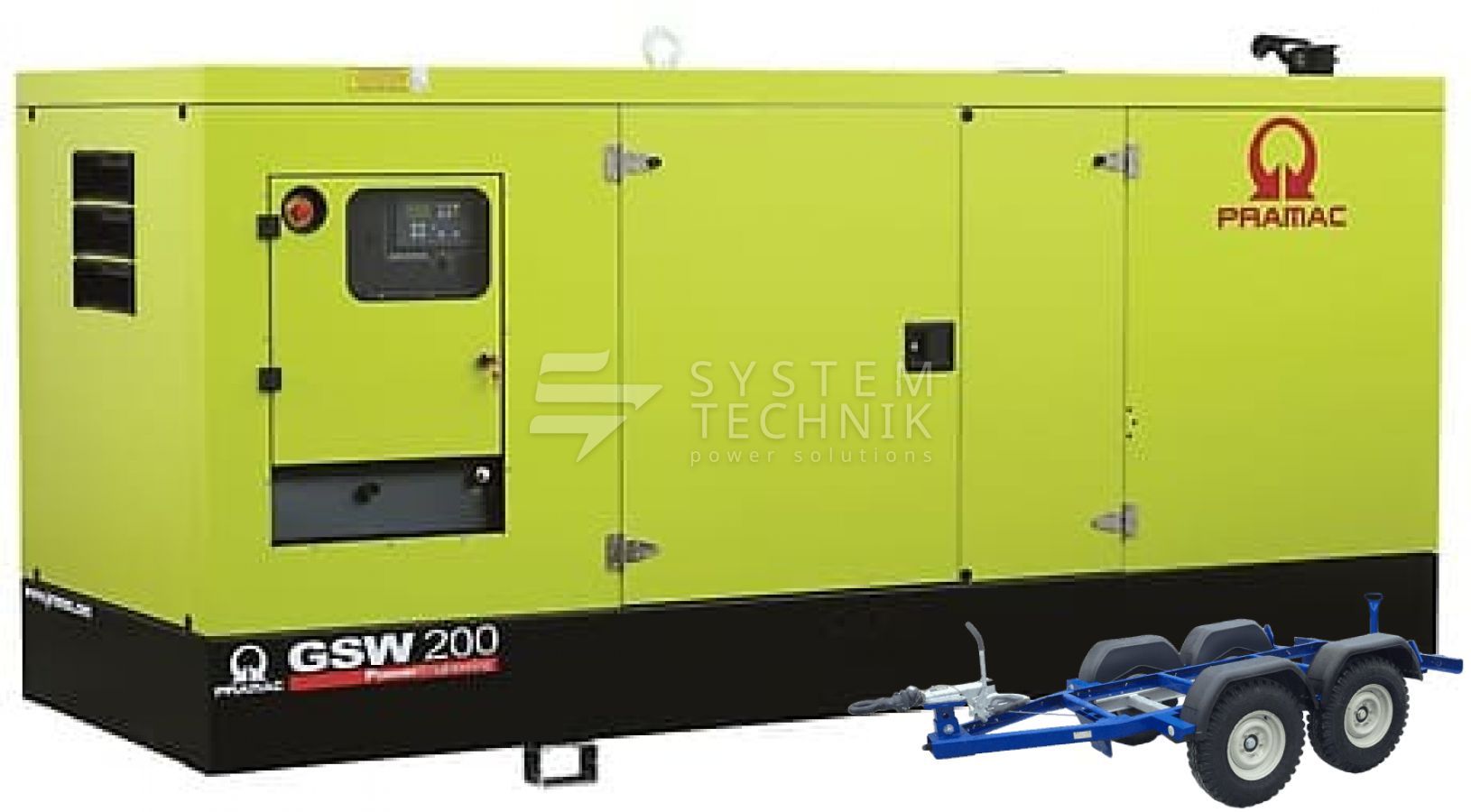 - Дизельный генератор Pramac GSW 200 P 440V В кожухе на прицепе