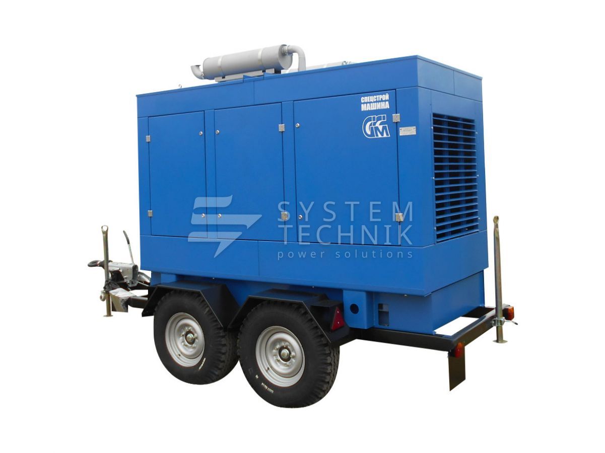 Дизельный генератор ССМ ЭД-120-Т400-1РКМ2 в шумозащитном кожухе на шасси на прицепе в Сергиевом Посаде